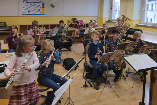 Mitte September 2021 wurde mit dem Musikunterricht begonnen. In den Unterrichtseinheiten werden zwei bis drei Nachwuchsmusiker zusammen von qualifizierten Ausbildern kompetent und behutsam auf dem ausgesuchten Instrument eingewiesen. Bereits einige Monate später wurden alle Nachwuchsmusiker zusätzlich in einer Bläserklasse vereint, in der erste Musikstücke einstudiert werden.