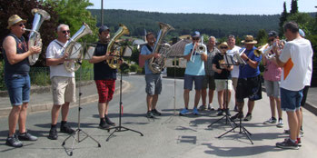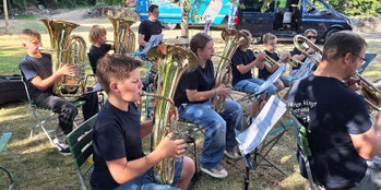 Stimmungsvolles Standkonzert mit Blasmusik-Hits geben die Leuchsentaler Musikanten zur Kerwa.